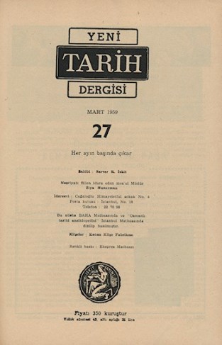 Ali Birinci: Babıali'nin Tarih Mecmuaları 1943-1965, Türk Yurdu Dergisi, Sayı: 132, Ağustos 1998, s. 34 |