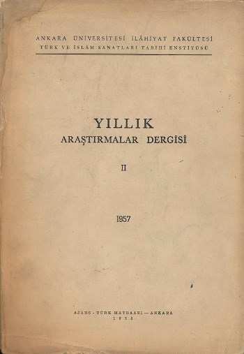 1956 Yıllık Araştırmalar Dergisi I 1956 xv + 242 sayfa YAZAR - MAKALESayfa İsmayil Hakkı BALTACIOĞLU Türk sanat gelenekleri1-28 Hilmi Ziya ÜLKEN Bedii değerin içtimai rolü29-43 Zeki ORAL Konya'da Ala'ud-din camii ve türbeleri I :Yapılar, kitabeler45-74 Suut Kemal YETKİN Mama Hatun Türbesi75-92 Tahsin ÖZGÜÇ, Mahmut AKOK Ağzıkara Han93-104 Oktay ASLANAPA Doğu Anadolu'da Karakoyunlu kümbetleri105-114 Ekrem Hakkı AYVERDİ Orhan Gazi devrinde mimari115-198 Bahaeddin ÖGEL Selçuk Devri Anadolu ağaç işçiliği hakkında notlar199-236 M. Kaya BİLGEGİL İstanbul Enstitüsünün son neşriyatı237-242 2 Yıllık Araştırmalar DergisiII1957 Yıllık Araştırmalar Dergisi II 1957 248 sayfa YAZAR - MAKALESayfa Rıfkı Melûl MERİÇ Beyazıd Camii Mimarı : II.Sultan Bayezid Devri mimarları ile bazı binaları Beyazıd camii ile alakalı hususlar, sanatkarlar ve eserleri5-76 Tahsin ÖZGÜÇ, Mahmut AKOK Afşin yakınındaki eshab-ı kehf külliyesi77-92 Kurt ERDMANN Zum Vierbogenbau von Keykubadiye93-106 Semavi EYİCE İki Türk abidesinin mahiyetleri hakkında notlar :İznik'te Nilüfer Hatun İmareti ve Kayseri'de Köşk Medresesi107-114 Semra ÖGEL Bir Selçuk portalleri grubu ve Karaman'daki Hatuniye Medresesi portali115-128 Mahmut AKOK Tokat şehrinin eski evleri129-151 Zeki ORAL Tarihi eserlermizi bezeyenlerden : Nakkaş Abdullah153-158 Kemal ÇIĞ Türk oymacıları(kağıtları) ve eserleri159-179 Hüseyin G. YURDAAYDIN Başlangıcından XIII.yüzyıl sonlarına kadar Müslüman minyatürü181-192 Nurullah BERK Çağdaş resmimizde eski gelenekler193-198 Hamit Zübeyr KOŞAY Türkiye halkının maddi kültürüne dair araştırmalar yapı ile ilgili sözler199-240 Bibliyografya Suut Kemal YETKİN L. A. MAYER, Islamic Architects and Their Works, Genève, 1956241-248 3 Yıllık Araştırmalar DergisiIII1981 Yıllık Araştırmalar Dergisi III 1981 220 sayfa YAZAR - MAKALESayfa Neşet ÇAĞATAY Ord. Prof. Suut Kemal Yetkin (1903-1980)5-7 Sabahattin TEOMAN "Büyük tedirgin" Suut Kemal Yetkin için8-12 Hikmet DİZDAROĞLU Suut Kemal Yetkin'in ardından13-16 İbrahim Agah ÇUBUKÇU Ord. Prof. Suut Kemal Yetkin'le bir söyleşi17-19 Neşet ÇAĞATAY Sivrihisar'ın Mülk Köyü'ndeki Doğan Arslan Mescidi21-39 Gönül ÖNEY İran ve Anadolu Selçuklu Türbelerinin mukayesesi41-66 Beyhan KARAMAĞARALI Ahlat'ta bulunan bir çini fırını67-94 Orhan TUNÇER Cizre Ulu Camii ve Medresesi95-136 Haluk KARAMAĞARALI Erzurum Ulu Camii137-177 Beyhan KARAMAĞARALI Muhammed Siyah Kalem imzalı minyatürler hakkında179-220 Toplam 3 fasikül